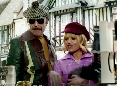 La politique de la maison, c'est d'abord les acteurs. Marielle, bien entendu, mais aussi et surtout la gente féminine ; ici, la magnifique Sophie Daumier ne parle pas, elle minaude, elle ronronne, elle miaule. Et puis, la palette des acteurs de complément, ces magnifiques éternels second ou troisième rôle qui, dans les films de Séria se contentent de jouer juste en balançant leur dialogue comme de vrais uppercuts à la mâchoires des spectateurs hilares. Evidemment, c'est ce dialogue qui nous transporte dans la fiction. Même si le monde de Comme la lune est caricaturé à l'extrême, si les détails aussi bien décoratifs que vestimentaires (ah! la moquette rose autour du rétroviseur!) sont soigneusement mis en valeur, tout est rigoureusement et cinématographiquement Juste. La grande différence entre un vrai dialogue et une suite de bons mots, c'est bien entendu sa crédibilité. De cette façon, le personnage de Marielle ne cesse de débiter des atrocités ou de monstrueuses conneries dans une joie et une allégresse communicatives.